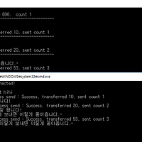 에코 서버와 유니티 버전 에코 클라이언트를 구동시킨 모습입니다.