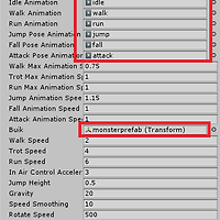 이 문제를 해결하는 방법은 많이 있습니다. 간단한 방법은 "monsterprefab" 의 CharacterControl과 CharacterCamera 컴포넌트를 사용할 수 없게 설정하고 "우리의" 몬스터 인스턴스에게만 가능하도록 설정하는 것입니다.