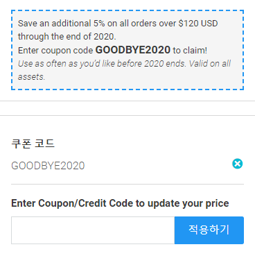 $120 이상 구매시 모든 자산에 5% 할인 혜택 적용 코드 안내